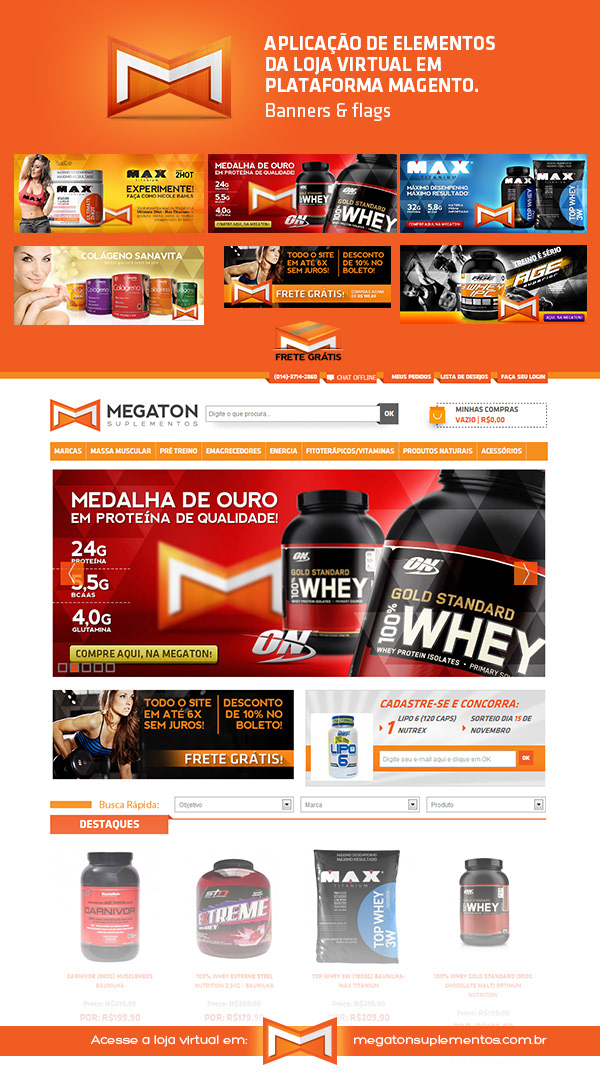 Branding project for Megaton Supplements and partnership for creating Megaton's Store on Magento Ecommerce Platform.